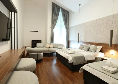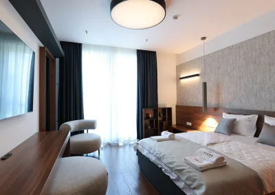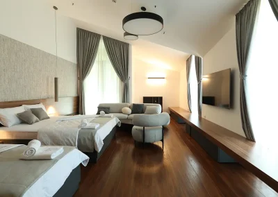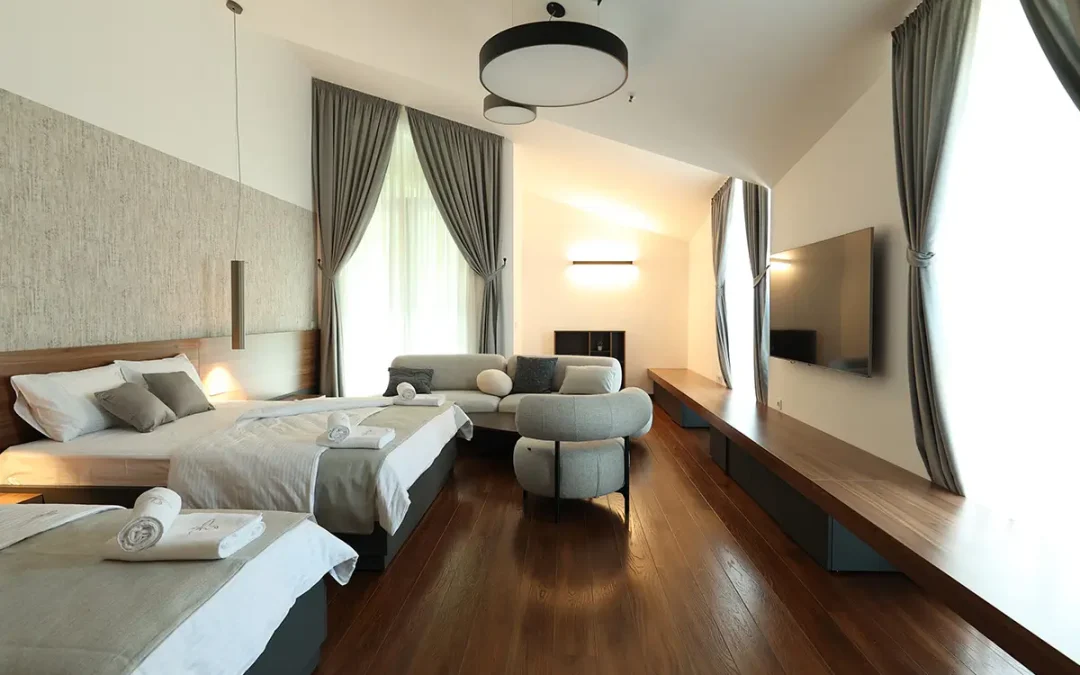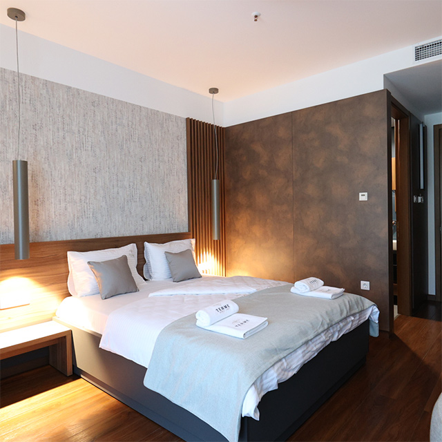 Doživite potpunu udobnost u prijatnim, pažljivo uređenim sobama koje garantuju maksimalnu privatnost i spokoj. Okruženi mirisom šume i atmosferom tišine, uz bogat izbor sadržaja, uživaćete u odmoru koji će vas osnažiti i odmoriti.