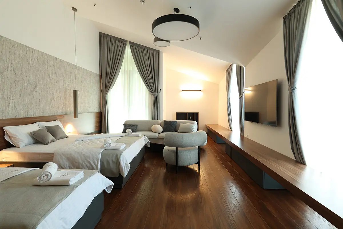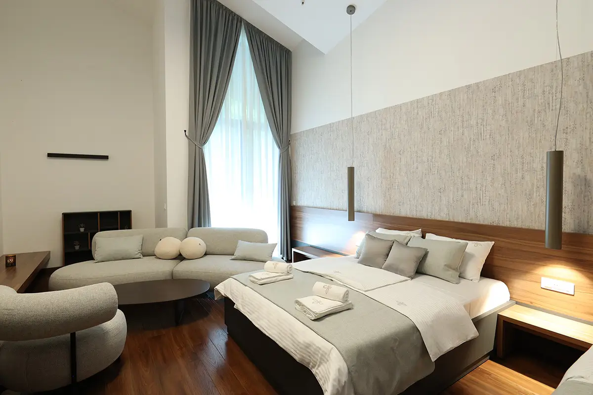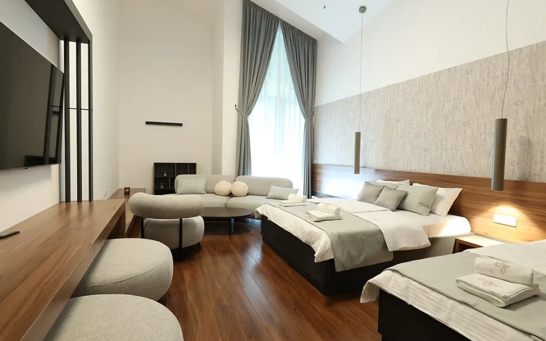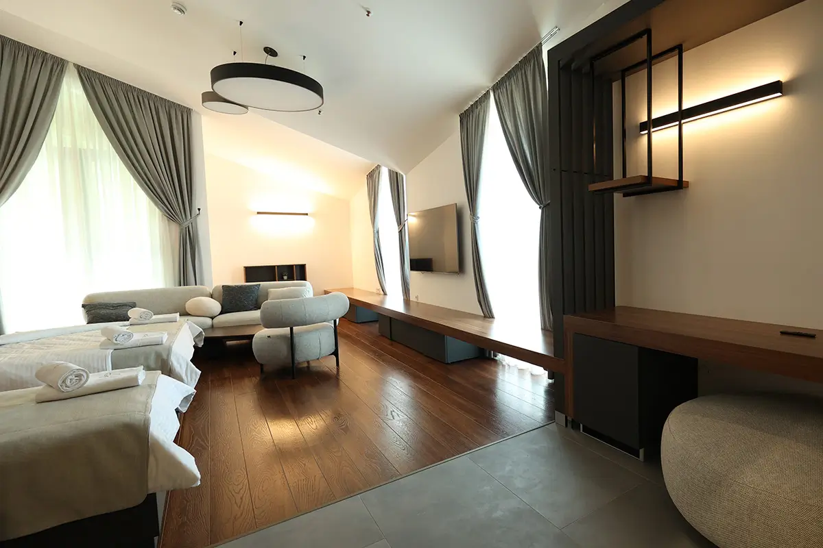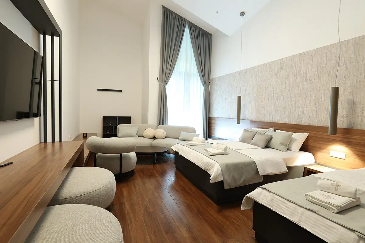 Prostrani apartmanski prostor sa dva udobna kreveta ili bračnim krevetom (na zahtjev)